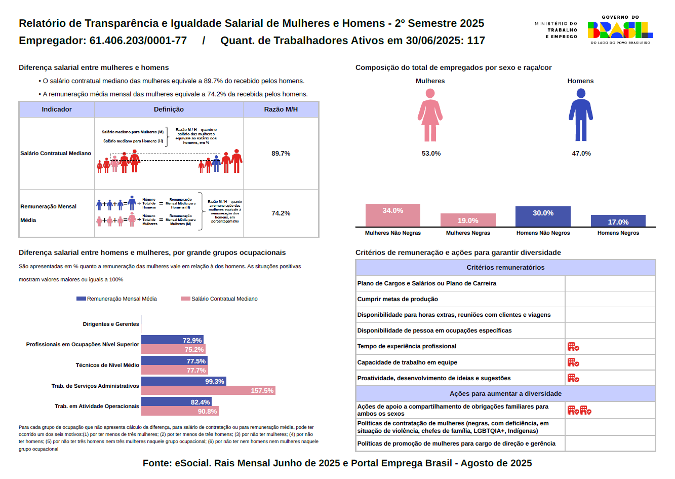 De acordo com a Lei nº 14.611 de 04 de Julho de 2023, a Portaria MTE Nº 3.714 e o Decreto nº 11.795/2023, a Solótica divulga o "Relatório de Transparência e Igualdade Salarial entre homens e mulheres", desenvolvido pelo Ministério do Trabalho e Emprego.